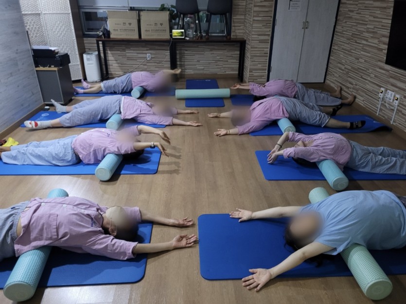 폼롤러 스트레칭 프로그램은 환자분들의 통증 완화와 마음의 회복을 함께 돕는 시간입니다.