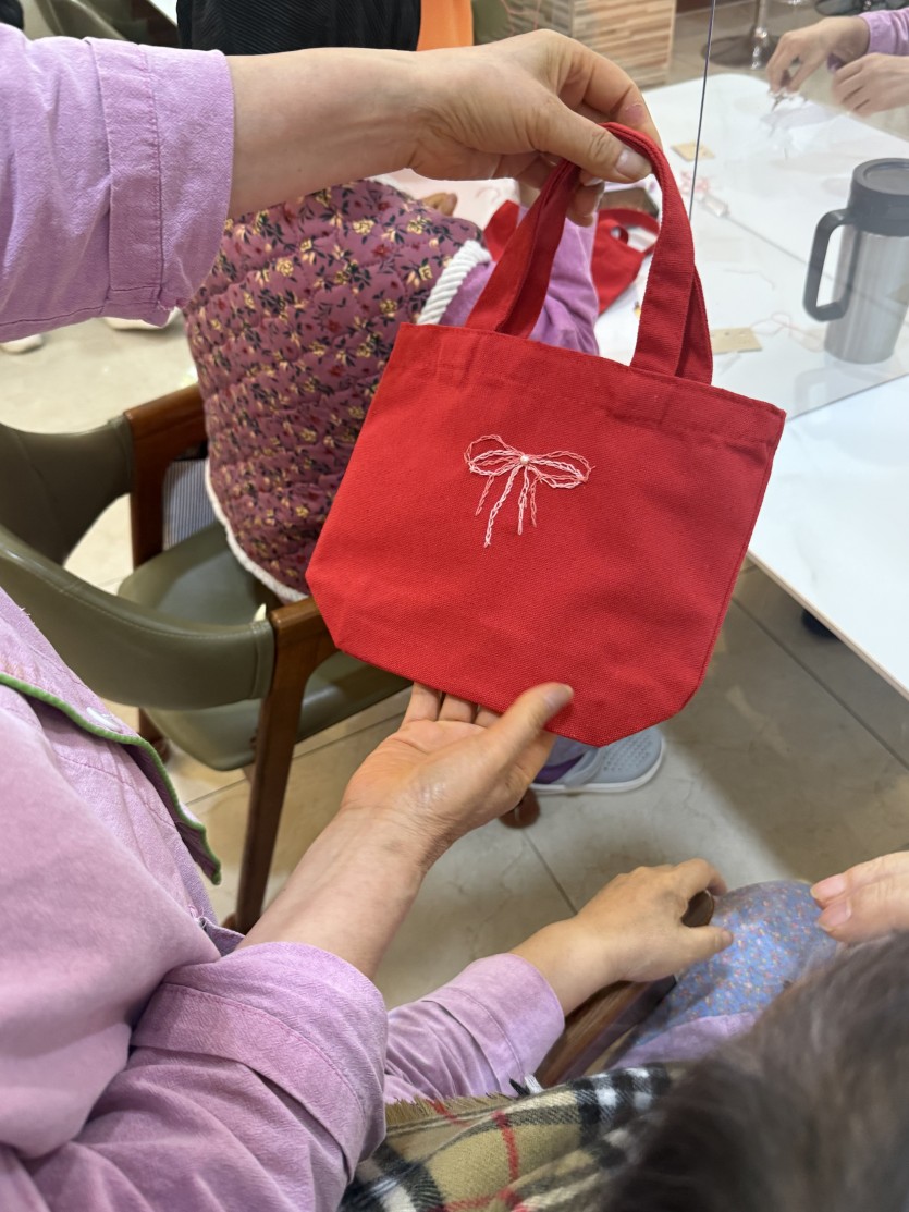완성된 미니 가방은 직접 수를 놓은 리본 덕분에 각자의 개성이 분명하게 드러났습니다.
