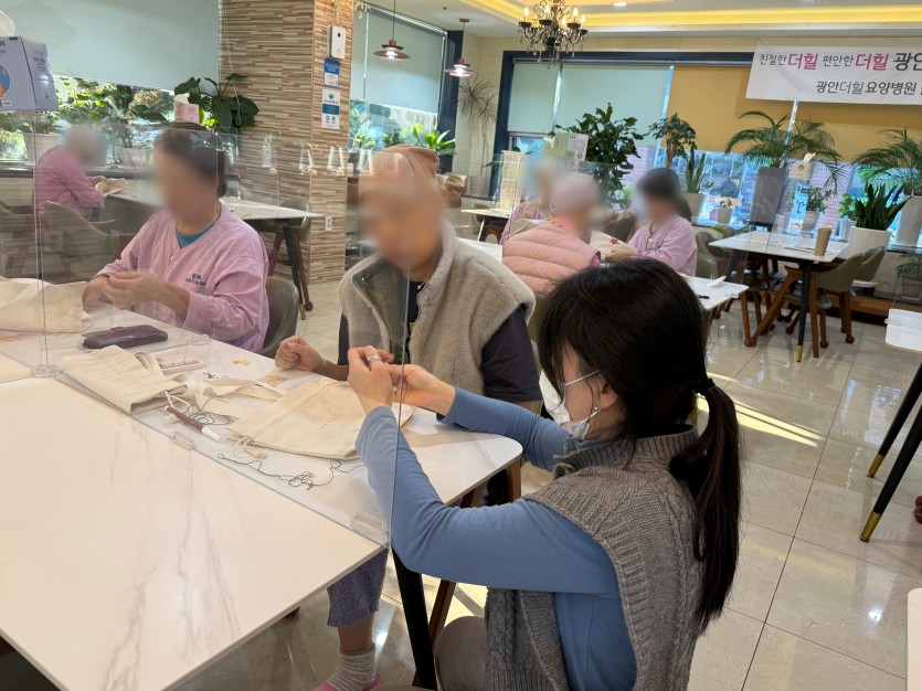 집중하며 자수를 하면 손의 미세 움직임을 자연스럽게 유도하고 집중과 몰입을 통해 정서적 안정에 도움을 줍니다.