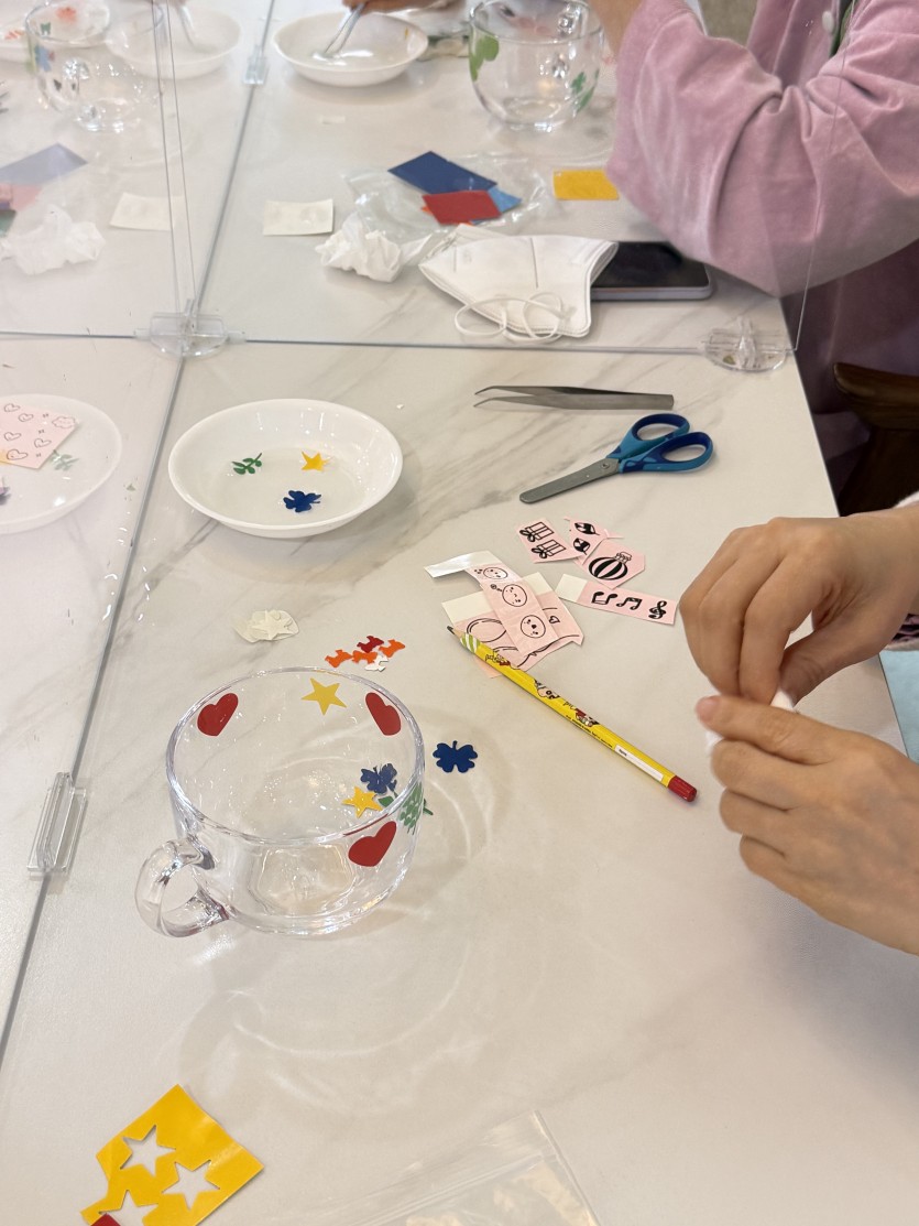 이번 원데이클래스 프로그램은 전사지와 유리컵을 활용하여 각자의 취향이 담긴 컵을 완성하는 시간을 가졌습니다.
