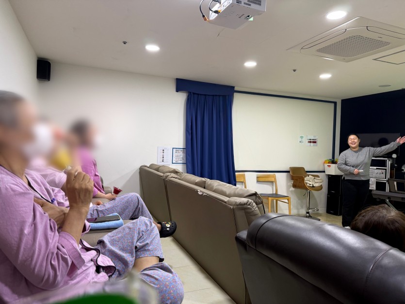 이번 주 목요일 오전 10시 30분, 2층 영화관에서 환자분들과 함께하는 음악치료 프로그램이 진행되었습니다.
